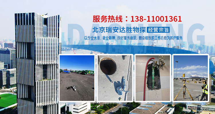 北京瑞安達勝物探技術有限公司成立于2012年,是一家管線探測、漏水檢測、地面空洞(塌陷、病害)檢測等業(yè)務的企業(yè)。公司自成立以來一直為各市政單位、開發(fā)商、設計單位、物業(yè)小區(qū)、學校、工廠等企事業(yè)單位提供:地下管線定位探測、漏水檢測、地質勘測、資源勘探等業(yè)務。